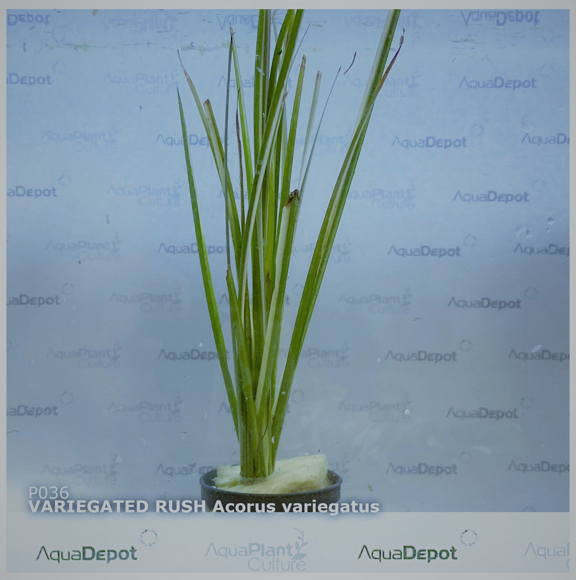 Hardy grass-like perennial with attractive green and creamy-white variegated fine weeping foliage. Use as a border plant with its fine, foliage gently weeping. A good contrast plant for texture and colour. Can be used as a tub plant or in aquatic gardens. Grows approx. 30cm tall.