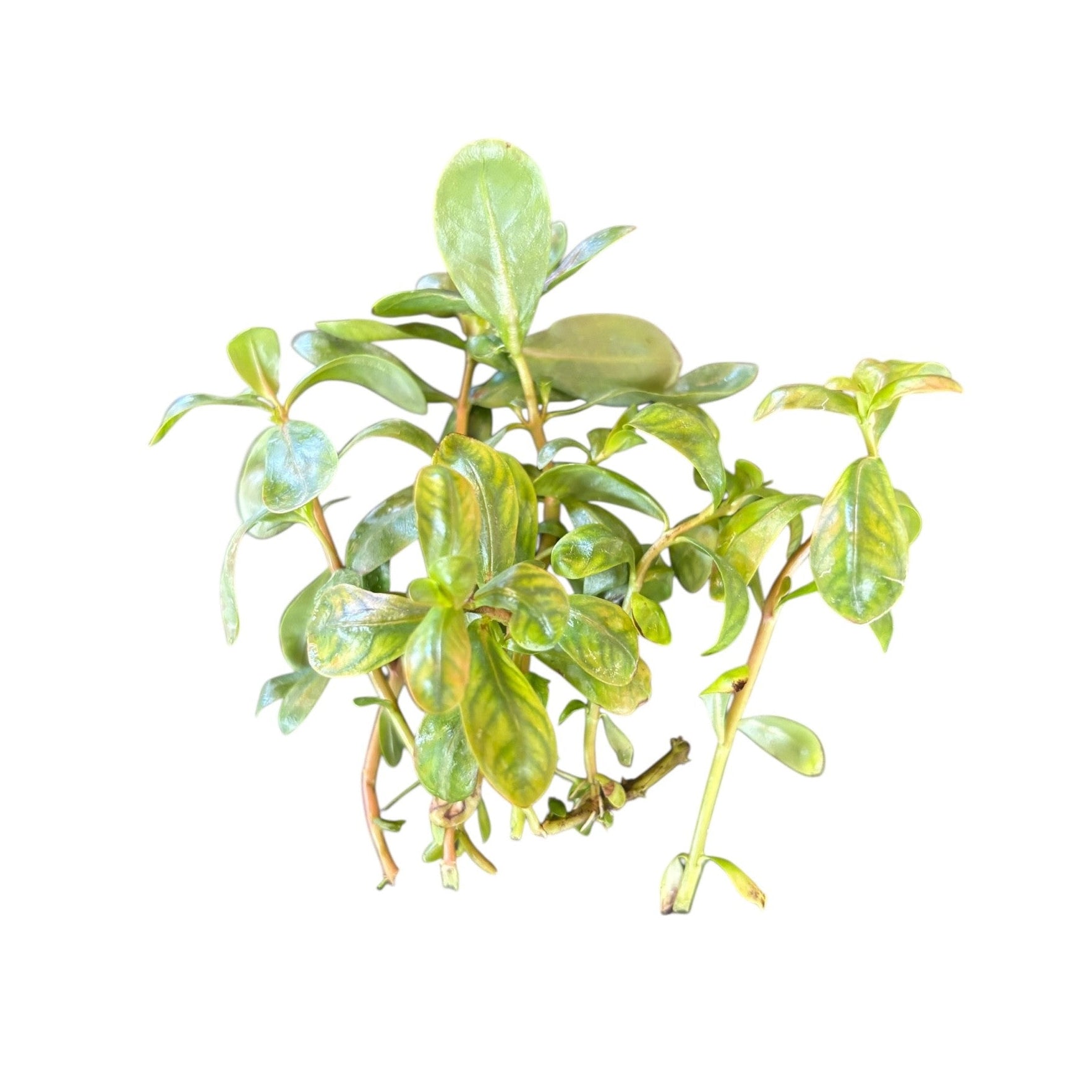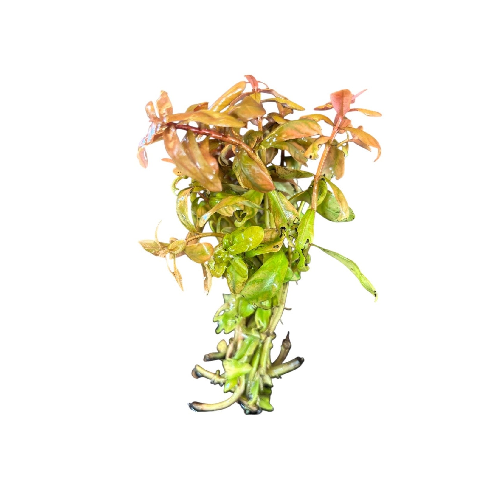This stem plant from tropical Africa develops quite narrow, 2-6 cm long leaves. In the submerged form they develop a brown-red to almost orange red colour. Characteristically the leaf margins are rolled downward. This species grows and propagates faster than Ammannia gracilis.